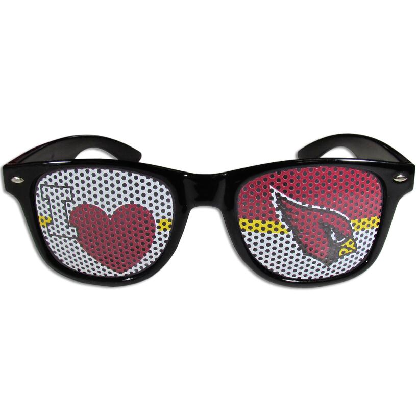 Our officially licensed I Heart game day shades are the perfect accessory for the devoted Arizona Cardinals fan! The sunglasses have durable polycarbonate frames with flex hinges for comfort and damage resistance. The lenses feature brightly colored team clings that are perforated for visibility.
