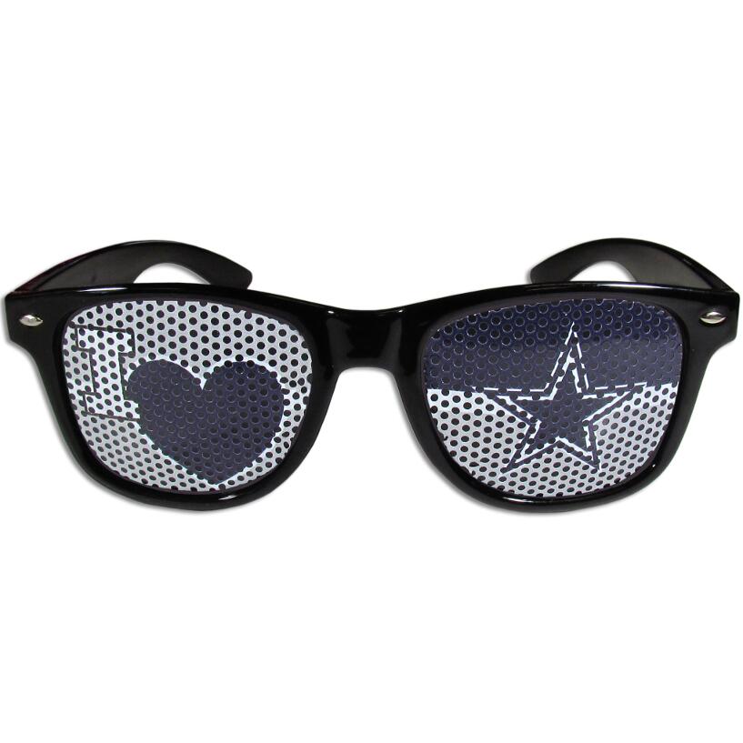 Our officially licensed I Heart game day shades are the perfect accessory for the devoted Dallas Cowboys fan! The sunglasses have durable polycarbonate frames with flex hinges for comfort and damage resistance. The lenses feature brightly colored team clings that are perforated for visibility.