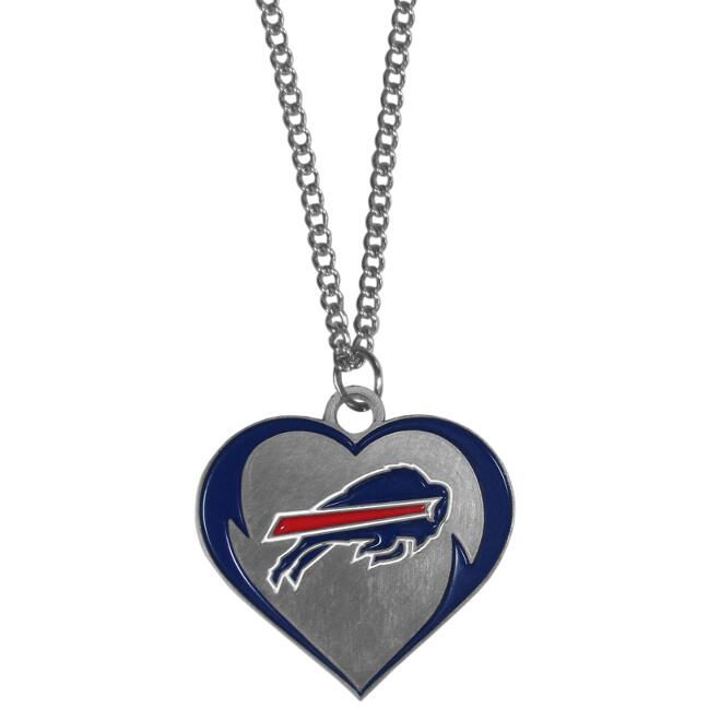 This bold heart necklace has a 1 1/8 inch heart charm on a 22 inch chaing. The charms feature a fully cast Buffalo Bills logo with expertly enameled detail and a beautiful enameled swirl finish. A perfect addition to any fan's jewelry collection.