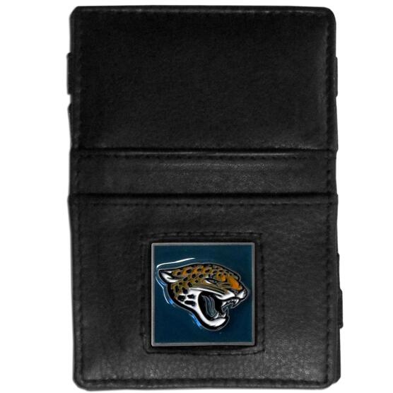 This officially licensed, innovative jacob's ladder wallet design traps cash with just a simple flip of the wallet! There are also outer pockets to store your ID and credit cards. The wallet is made of fine quality leather with a fully cast & enameled Jacksonville Jaguars emblem on the front.