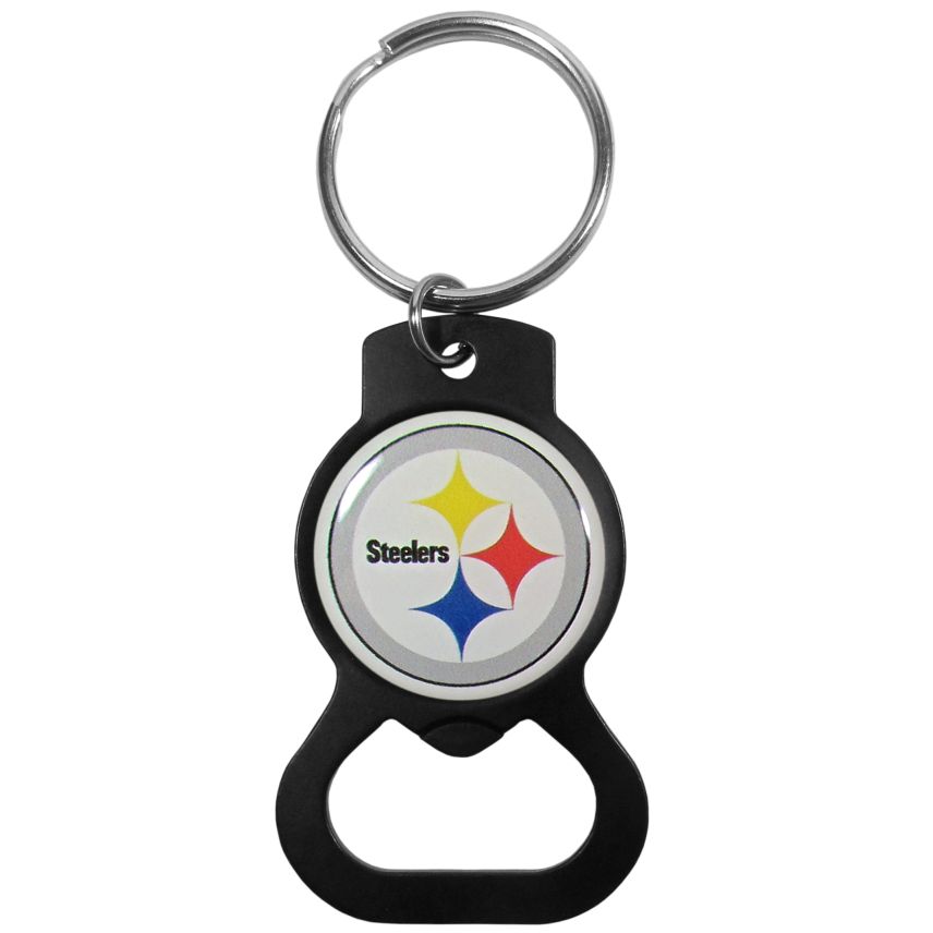 Hate searching for a bottle opener, get our Pittsburgh Steelers bottle opener key chain and never have to search again! The matte black key chain features a bright team emblem.