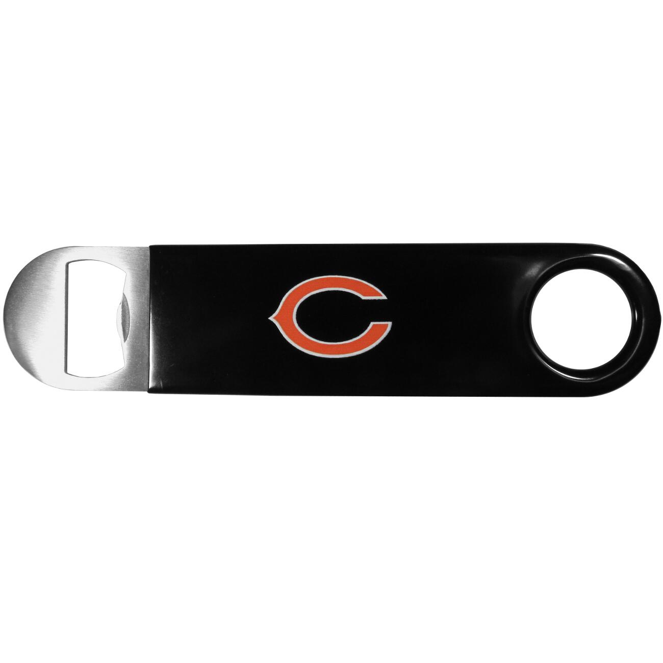 This heavy-duty steel opener is extra long, with a durable vinyl covering. The extra length provides more leverage for speed opening and the opener features a large printed Chicago Bears logo.