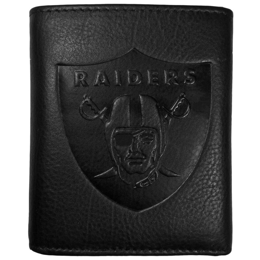 This stylish leather wallet is made of high quality leather with a supple feel and classic look. The front of the tri-fold style wallet has a deeply embossed Las Vegas Raiders logo. The billfold is packed with features that will allow to keep organized, lots of credit card slots, windowed ID slot, large pockets for bills and a removable sleeve with extra slots for even more storage. This is a must-have men's fashion accessory that would make any fan very proud to own.