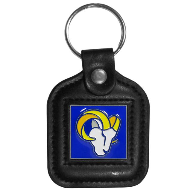 Our Los Angeles Rams black key fob with stitched detail and inlaid, metal team emblem with enameled color details.