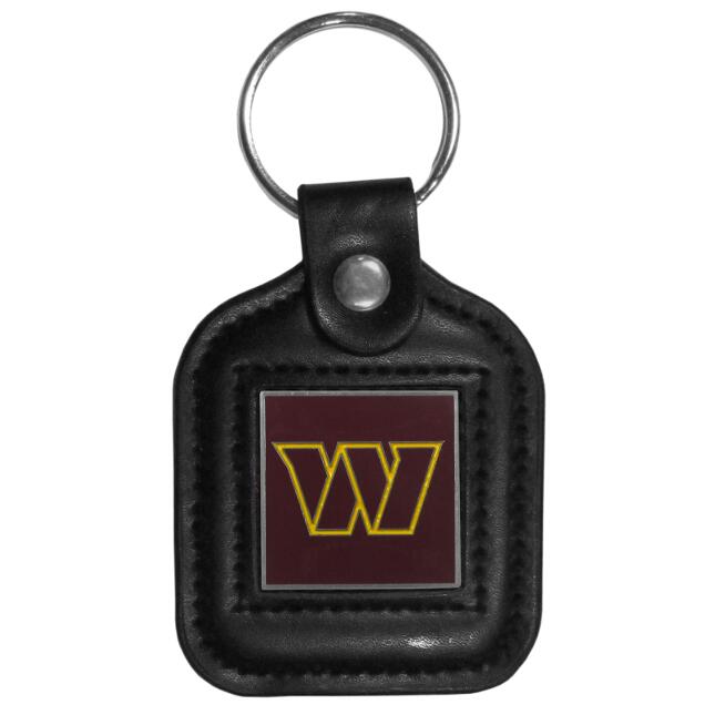 Our Washington Commanders black key fob with stitched detail and inlaid, metal team emblem with enameled color details.