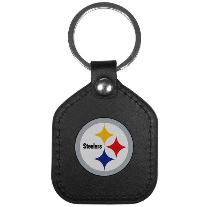 Our geniune leather key chain features a large Pittsburgh Steelers logo printed in excellent detail. The quality fob has stitching details around the edges and comes with a standard split ring for organizing home and auto keys.