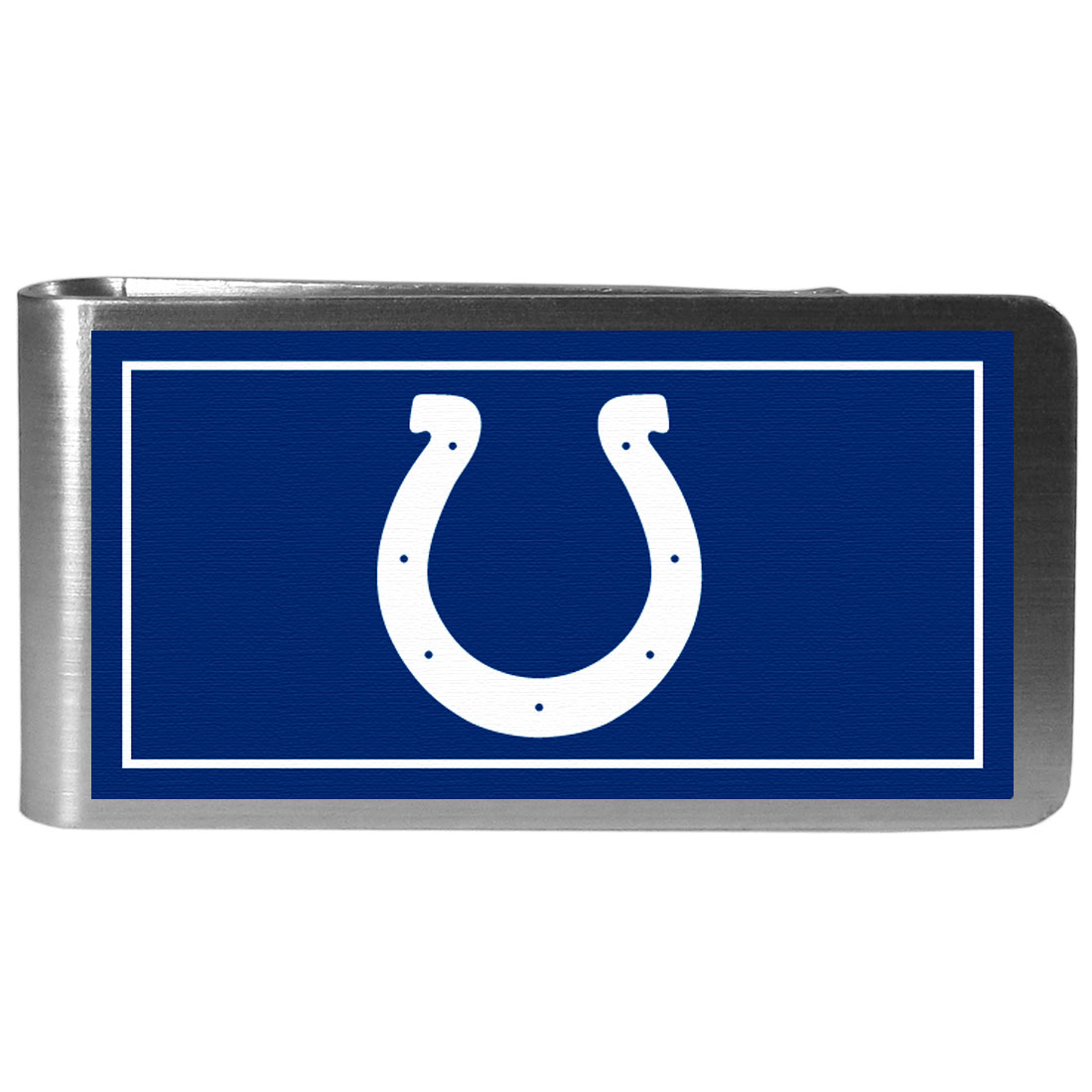Our brightly colored steel money clips have a classic style and superior quality. The strong, steel clip has a primary colors of the Indianapolis Colts and their logo over the brushed metal finish creating a stylish men's fashion accessory that would make any fan proud.