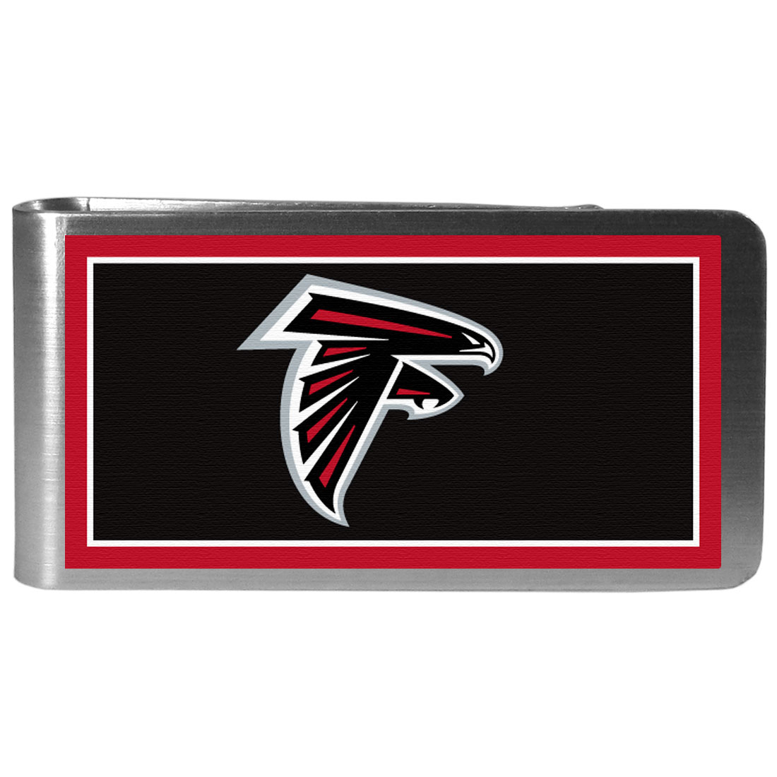 Our brightly colored steel money clips have a classic style and superior quality. The strong, steel clip has a primary colors of the Atlanta Falcons and their logo over the brushed metal finish creating a stylish men's fashion accessory that would make any fan proud.