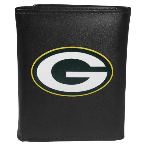 Our classic fine leather tri-fold wallet is meticulously crafted with genuine leather that will age beautifully so you will have a quality wallet for years to come. This is fan apparel at its finest. The wallet is packed with organizational features; lots of credit card slots, large billfold pocket, and a window ID slot. The front of the wallet features an extra large Green Bay Packers printed logo.