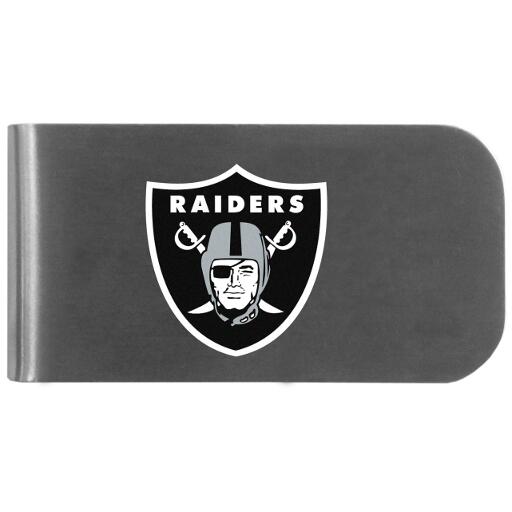 This unique money clip features a classic, brushed-metal finish with a handy bottle opener feature on the back. The clip has the Las Vegas Raiders logo expertly printed on the front of the clip.