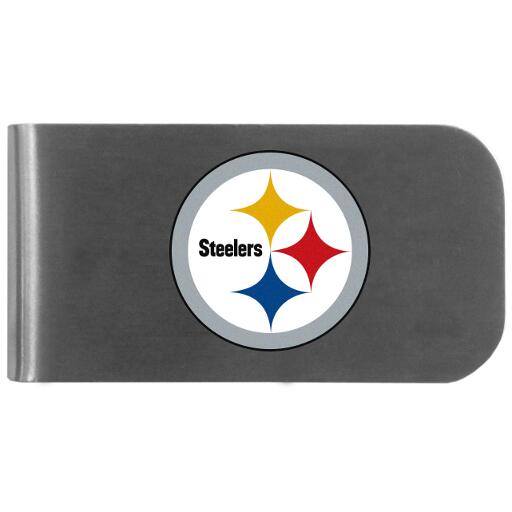 This unique money clip features a classic, brushed-metal finish with a handy bottle opener feature on the back. The clip has the Pittsburgh Steelers logo expertly printed on the front of the clip.