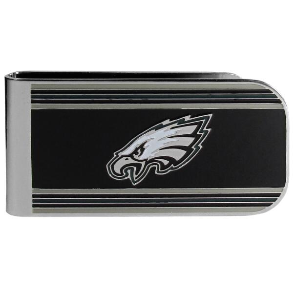 Our MVP money clip is made of high quality steel with a chrome overlay and enameled team colors and logo. The exceptional craftmanship on this piece makes it a men's fashion accessory that any fan would be proud to own. The cast detail in the Philadelphia Eagles logo is perfectly detailed. The clip features an inner spring to hold your cash and cards securely in place.