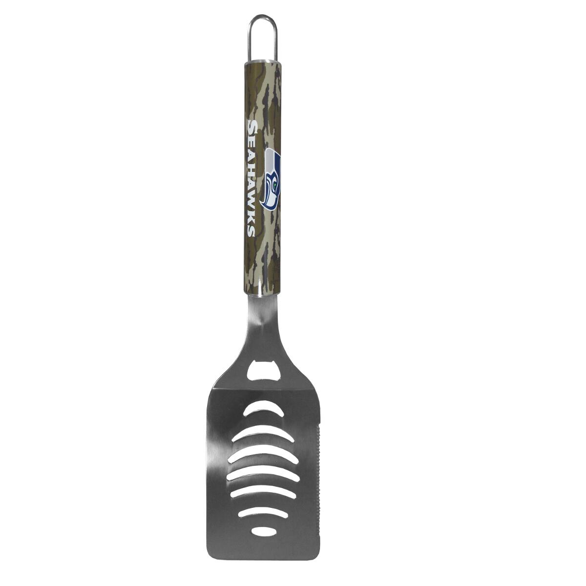 Our tailgater spatula really catches your eye with the official Mossy Oak camouflage background and vivid Seattle Seahawks digital graphics. The 420 grade stainless steel spatula is a tough, heavy-duty tool that will last through years of tailgating fun. The spatula features a bottle opener and sharp serrated edge.