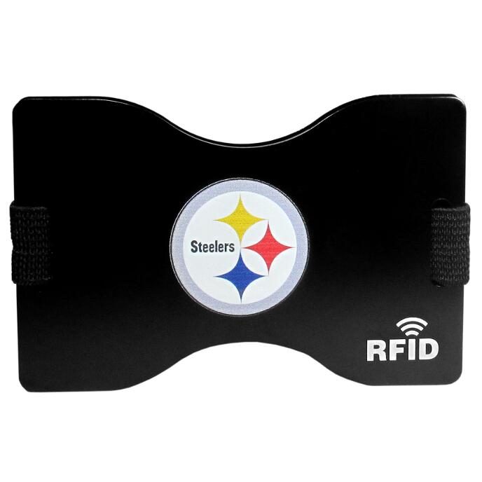Our RFID blocking wallet and moneyclip is designed to help protect you from falling victim to a particular brand of electronic pickpocketing call RFID skimming. RFID skimming allows a criminal to scan your cards with chips and read your personal information. This attractive Pittsburgh Steelers wallet protects against this threat while also meeting all of your slim wallet needs. Store your cards in between the expandable RFID plates and store you cash in the handy outer money clip.
