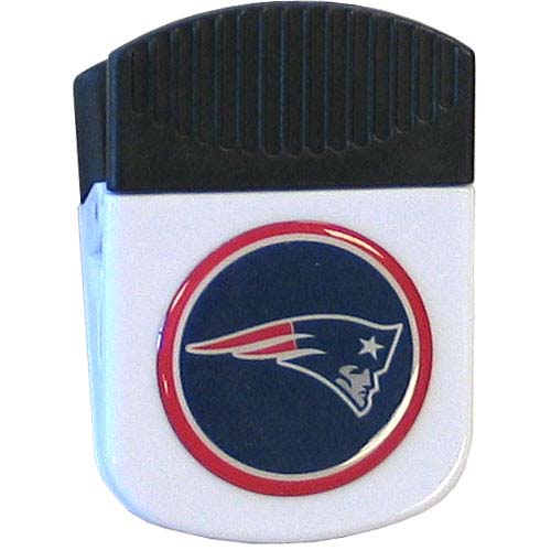 Use this attractive NFL clip magnet to hold memos, photos or appointment cards on the fridge or take it down keep use it to clip bags shut. The magnet features a domed New England Patriots logo.