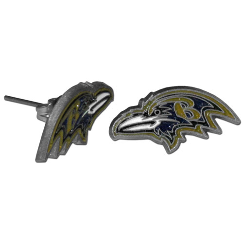 Big and flashy isn't for every woman. These 1/2 inch stud earrings offer a small option that still shows she is a true Baltimore Ravens fan. The earrings have hypoallergenic posts.