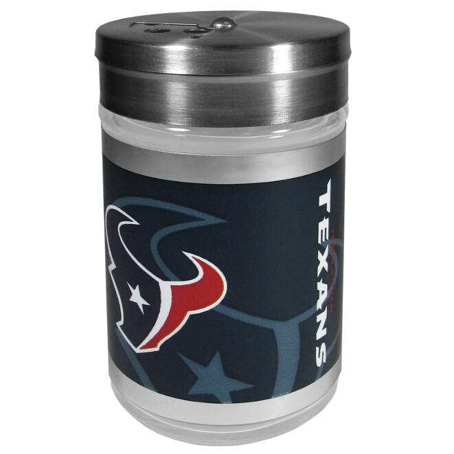 Spice it up with our Houston Texans tailgater season shakers! This compact shaker is 2 inch tall with a twist top that closes off the holes at the top making it perfect for travel preventing those messy spills. The shaker has wide holes perfect for keeping your pepper seeds or cheese toppings. The bright team graphics will make you the envy of the other fans while you are grilling up your tailgating goodies.