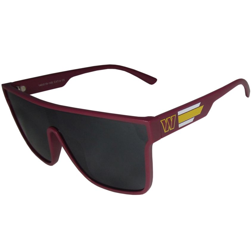 These trendy flat top style glasses come with Washington Commanders designs on a team colored frame. The light-weight frames are built to last with flex hinges for comfort and durability. These fashionable sunglasses are perfect for someone with an active lifestyle. Whether you are hiking, fishing, boating, running on the beach, golfing or playing your favorite sport these designer frames will bring style to all of your outdoor activities.