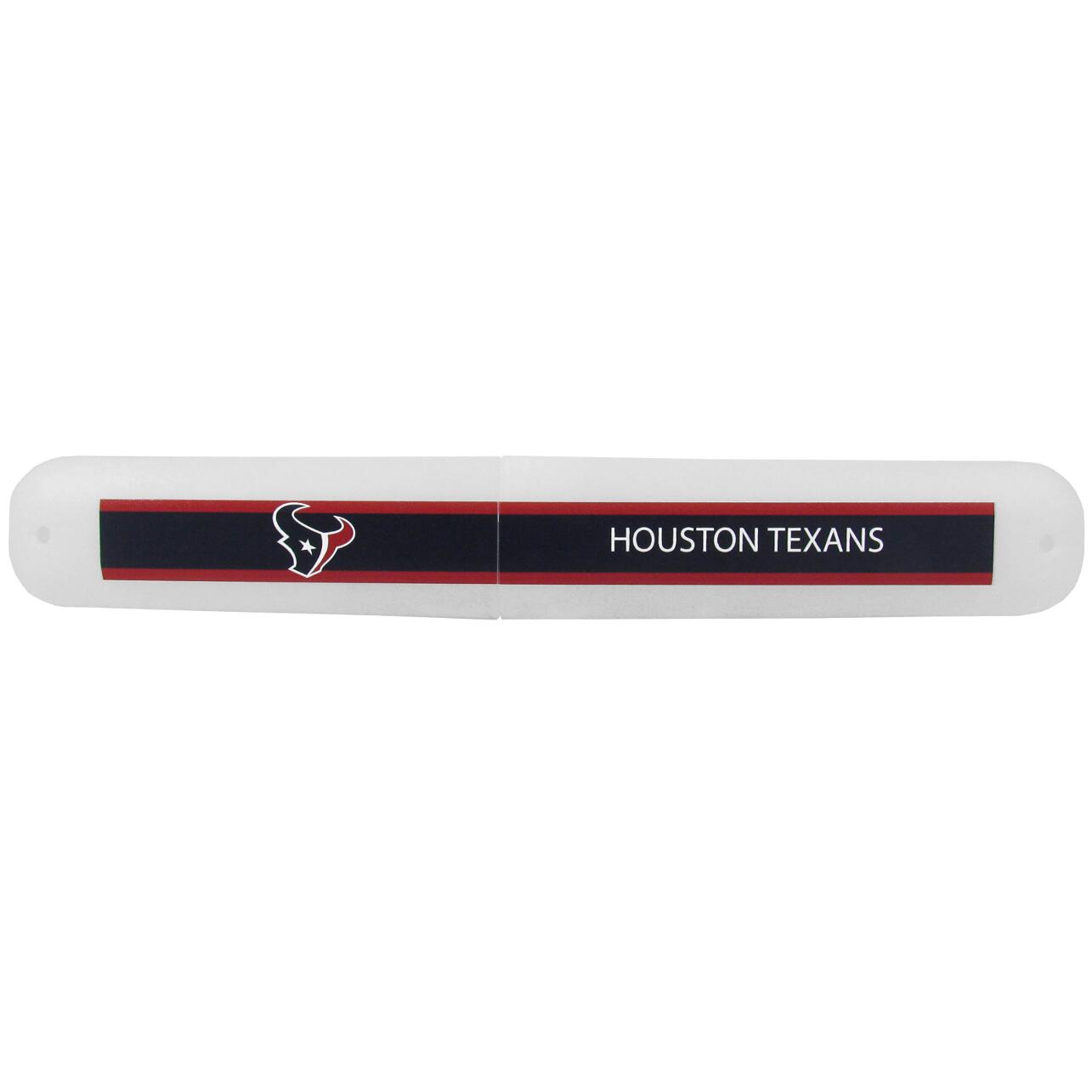 Let your toothbrush travel in style with our Houston Texans toothbrush case. The case snaps together in the center to keep your toothbrush and travel case clean while traveling. The case features full team graphics down the lenght of the case.