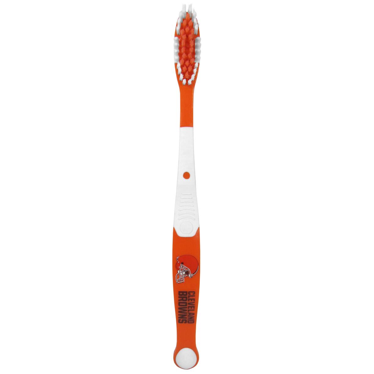 Why have a boring old toothbrush when you can have the MVP of toothbrushes! This cool Cleveland Browns toothbrush features crisp team graphics on a team colored toothbrush. This is no simple novelty item though, it is a high-quality hygiene device with soft bristles for a gentle clean and rubber gum massagers on the sides of the bristles.