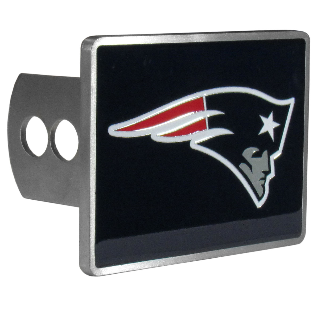These are heavy-duty hitch plates made from fully cast zinc with raised details and the New England Patriots logo with enameled details. The hitch kit includes metal plugs for both the Class II and Class III hitch receivers. The screws and gaskets are included.