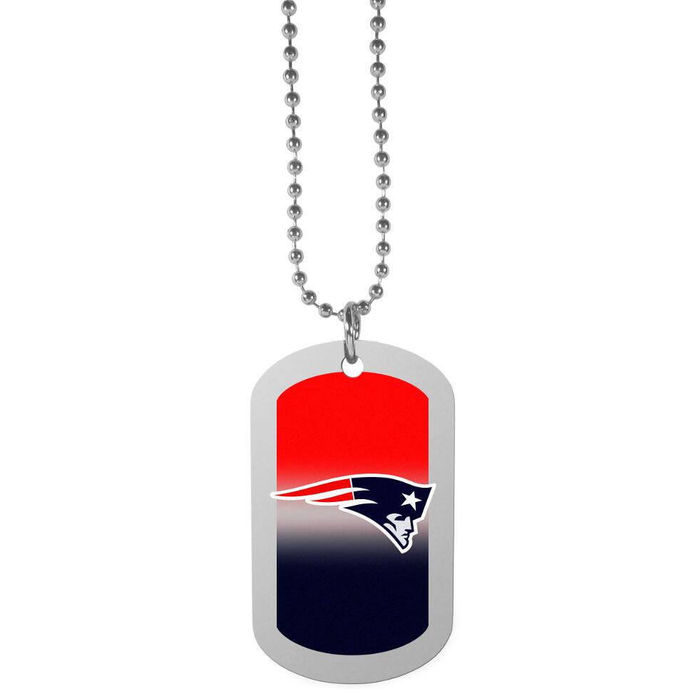 Dog tag necklaces are a fashion statement that is here to stay. The sporty version of the classic tag features a gradient print in team colors featuring a full color team logo over a high polish tag to create a bold and sporty look. The tag comes on a 26 inch ball chain with a ball and joint clasp. Any New England Patriots would be proud to wear this attractive fashion accessory.
