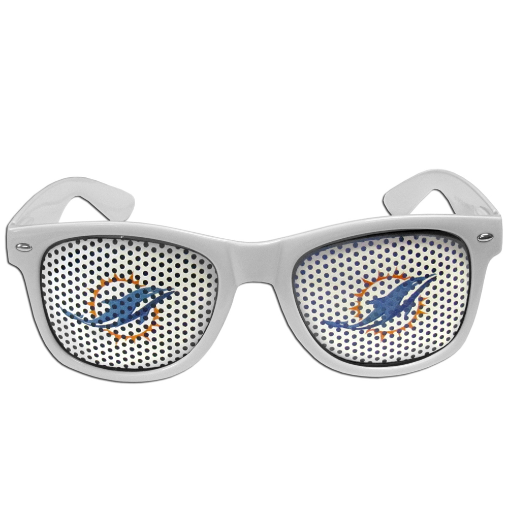 Our officially licensed game day shades are the perfect accessory for the devoted Miami Dolphins fan! The sunglasses have durable polycarbonate frames with flex hinges for comfort and damage resistance. The lenses feature brightly colored team clings that are perforated for visibility.