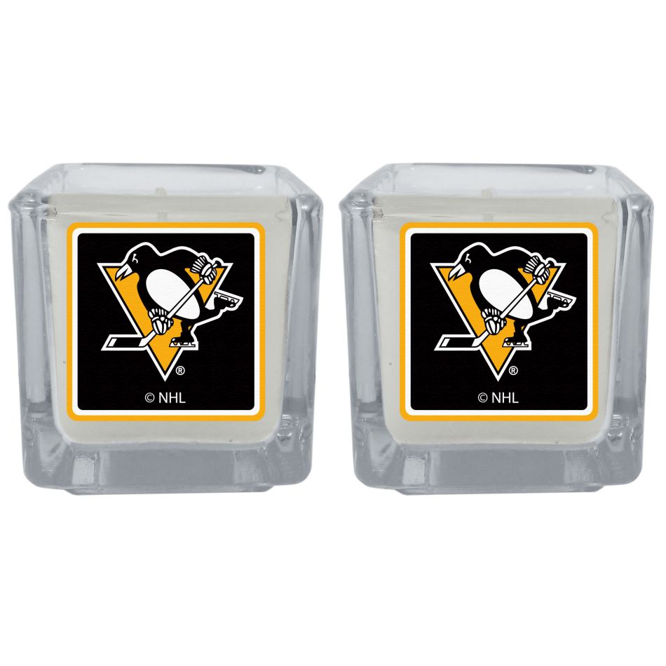 Our candle set features 2 lightly vanilla scented candles with the Pittsburgh Penguins logo expertly printed on front. The candles are 2 inches tall in the votive style.