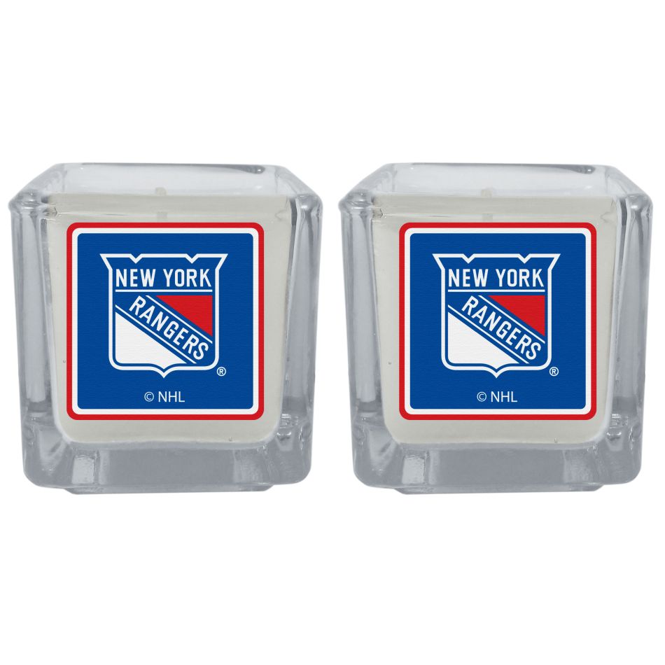Our candle set features 2 lightly vanilla scented candles with the New York Rangers logo expertly printed on front. The candles are 2 inches tall in the votive style.