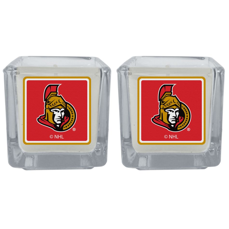 Our candle set features 2 lightly vanilla scented candles with the Ottawa Senators logo expertly printed on front. The candles are 2 inches tall in the votive style.