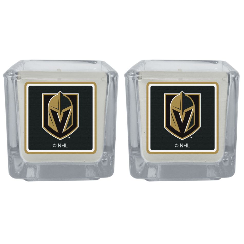 Our candle set features 2 lightly vanilla scented candles with the Vegas Golden Knights logo expertly printed on front. The candles are 2 inches tall in the votive style.