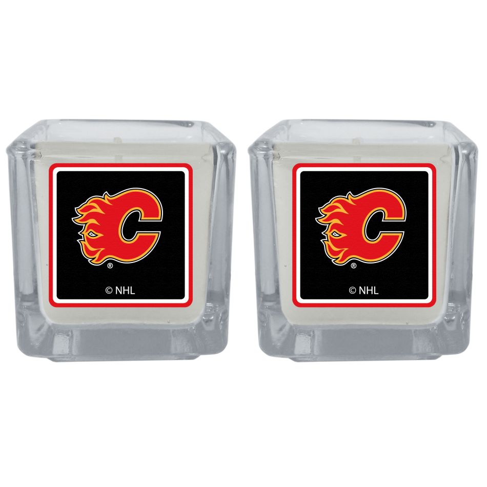 Our candle set features 2 lightly vanilla scented candles with the Calgary Flames logo expertly printed on front. The candles are 2 inches tall in the votive style.