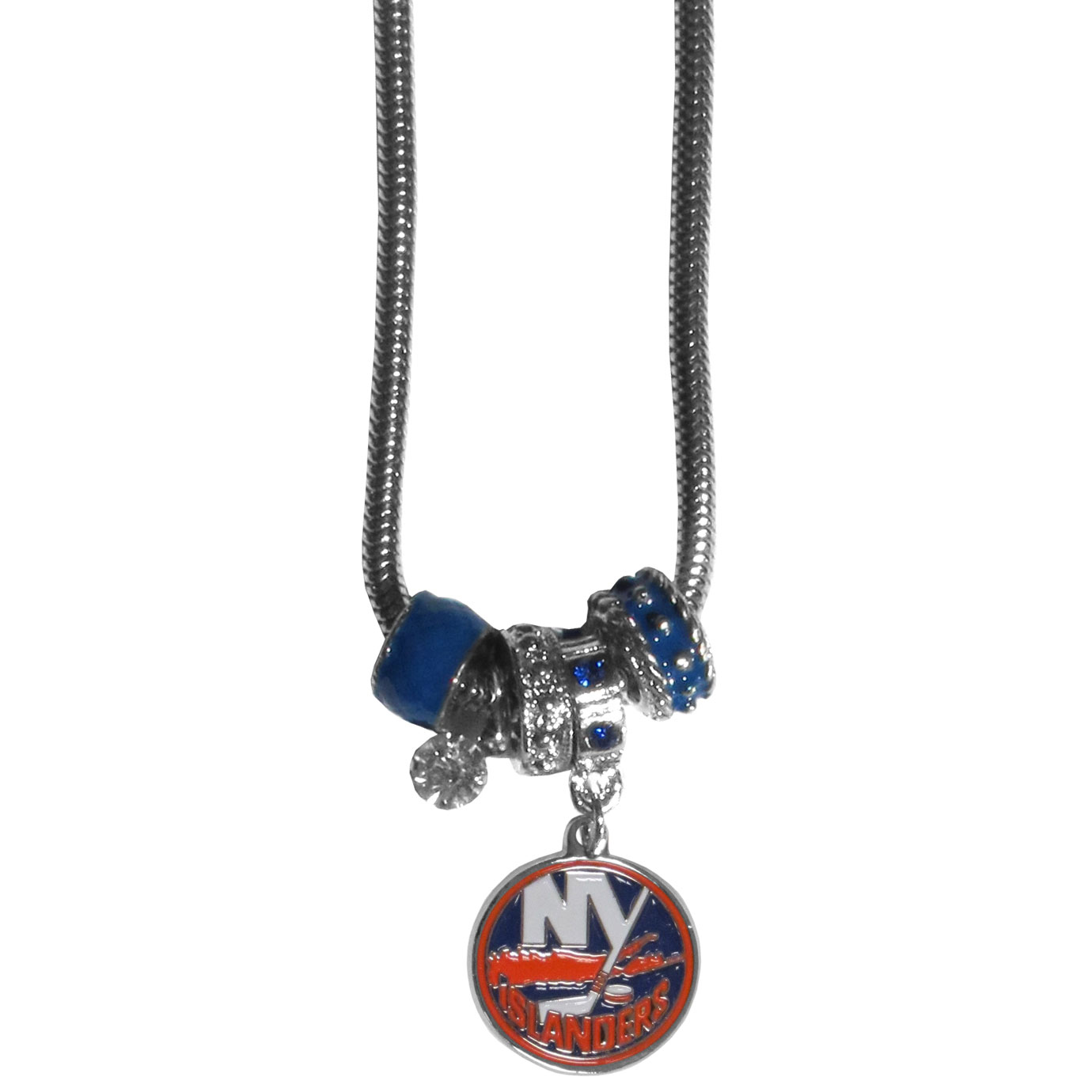 We have combined the wildly popular Euro style beads with your favorite team to create our New York Islanders bead necklace. The 18 inch snake chain features 4 Euro beads with enameled team colors and rhinestone accents with a high polish, nickel free charm and rhinestone charm. Perfect way to show off your team pride.