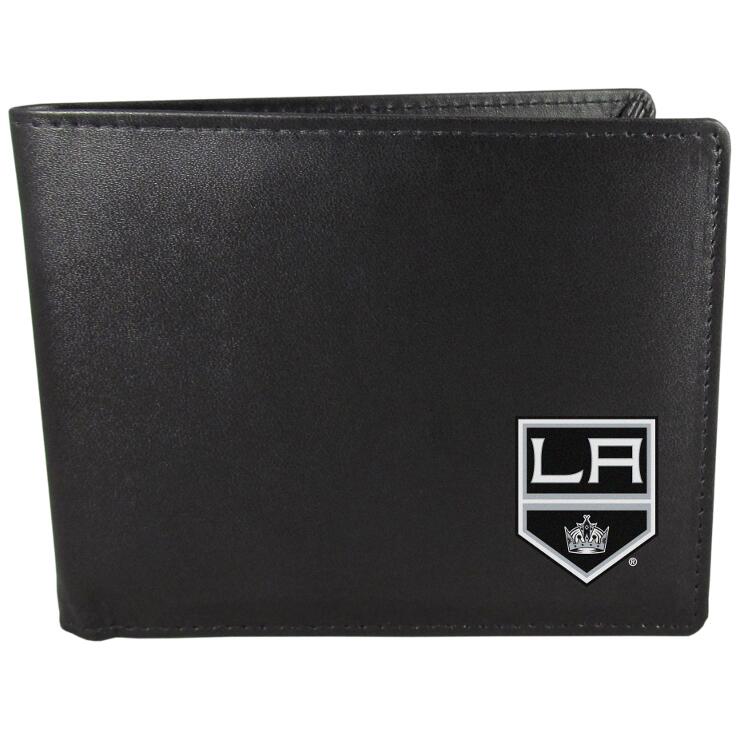 Sports fans do not have to sacrifice style with this classic bi-fold wallet that sports a Los Angeles Kings emblem. This men's fashion accessory has a leather grain look and expert craftmanship for a quality wallet at a great price. The wallet features inner credit card slots, windowed ID slot and a large billfold pocket. The front of the wallet features a printed team logo.