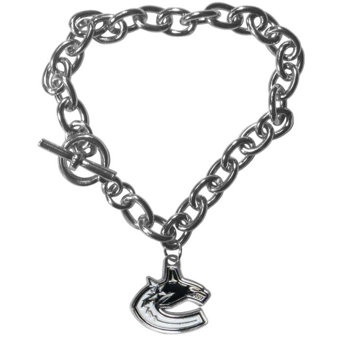 Our classic single charm bracelet is a great way to show off your team pride! The 7.5 inch large link chain features a high polish Vancouver Canucks charm and features a toggle clasp which makes it super easy to take on and off.