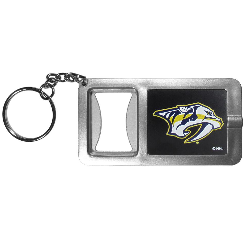Never be without light with our Nashville Predators flashlight keychain that features a handy bottle opener feature. This versatile key chain is perfect for camping and travel and is a great way to show off your team pride!