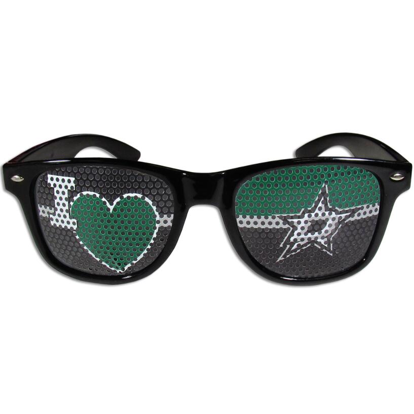 Our officially licensed I Heart game day shades are the perfect accessory for the devoted Dallas Stars fan! The sunglasses have durable polycarbonate frames with flex hinges for comfort and damage resistance. The lenses feature brightly colored team clings that are perforated for visibility.