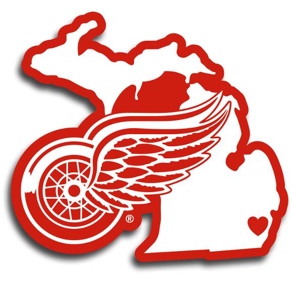 It's a home state decal with a sporty twist! This Detroit Red Wings decal feature the team logo over a silhouette of the state in team colors and a heart marking the home of the team. The decal is approximately 5 inches on repositionable vinyl.