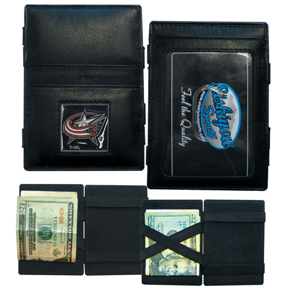 This officially licensed, innovative jacob's ladder wallet design traps cash with just a simple flip of the wallet! There are also outer pockets to store your ID and credit cards. The wallet is made of fine quality leather with a fully cast & enameled Columbus Blue Jackets emblem on the front.