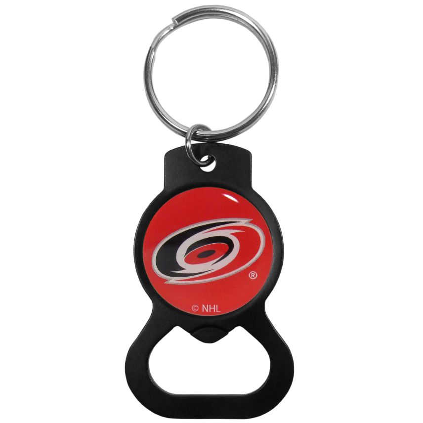 Hate searching for a bottle opener, get our Carolina Hurricanes bottle opener key chain and never have to search again! The matte black key chain features a bright team emblem.