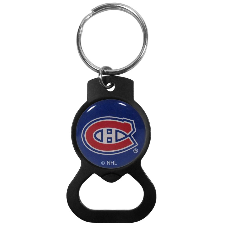 Hate searching for a bottle opener, get our Montreal Canadiens bottle opener key chain and never have to search again! The matte black key chain features a bright team emblem.