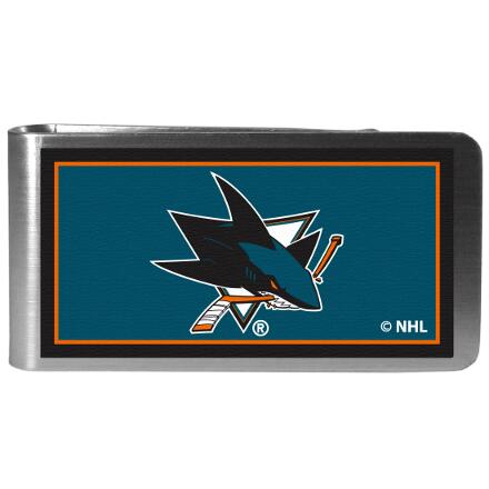 Our brightly colored steel money clips have a classic style and superior quality. The strong, steel clip has a primary colors of the San Jose Sharks and their logo over the brushed metal finish creating a stylish men's fashion accessory that would make any fan proud.