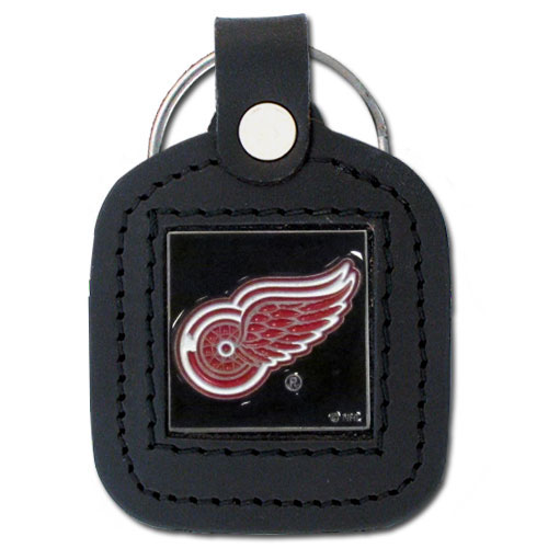 Our Detroit Red Wings black key fob with stitched detail and inlaid, metal team emblem with enameled color details.