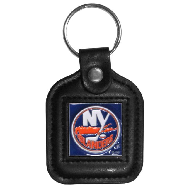 Our New York Islanders black key fob with stitched detail and inlaid, metal team emblem with enameled color details.