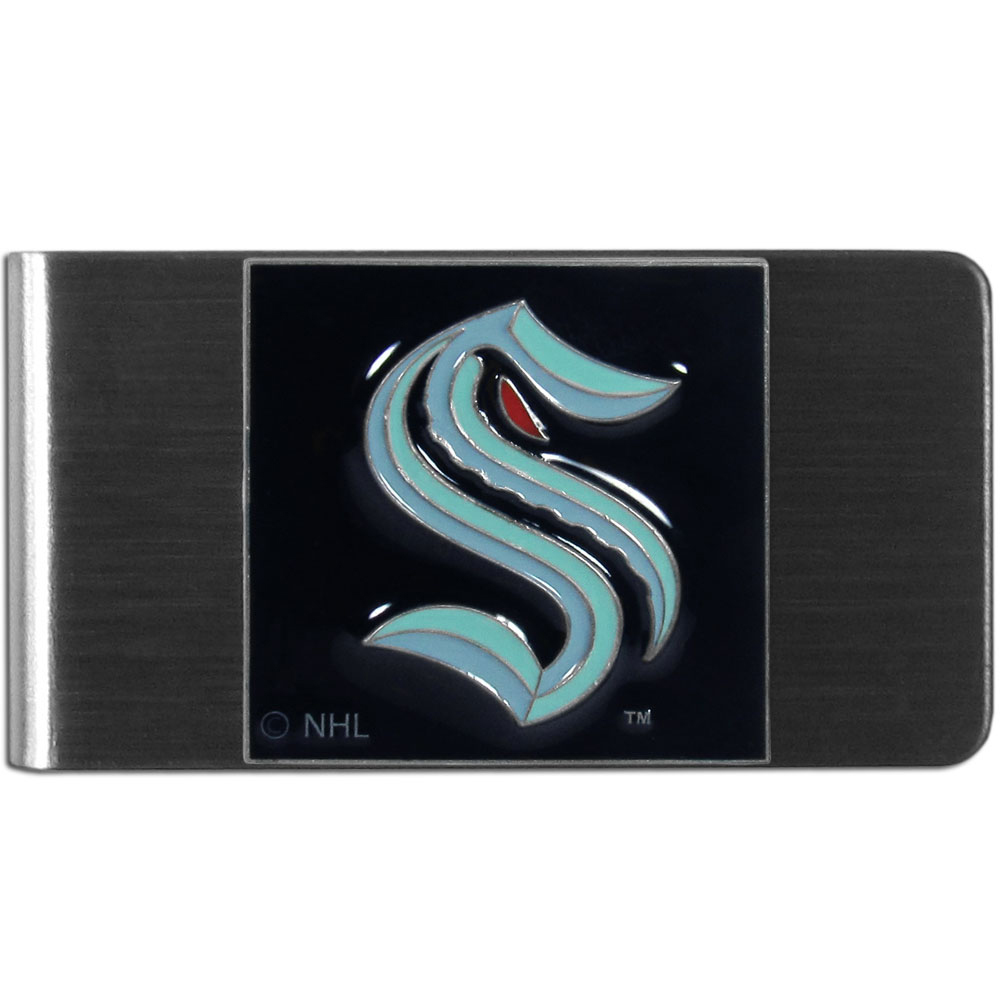 Our stainless steel money clip has classic style and team pride wrapped up in a beautiful package. The attractive clip features a metal Seattle Kraken emblem with expertly enameled detail