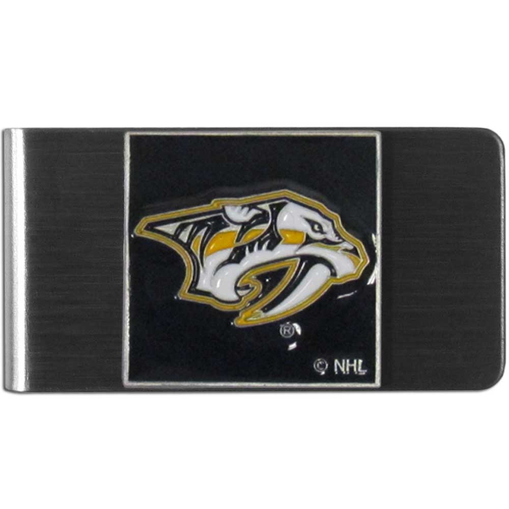 Our stainless steel money clip has classic style and team pride wrap up in a beautiful package. The attractive clip features a metal Nashville Predators emblem with expertly enameled detail