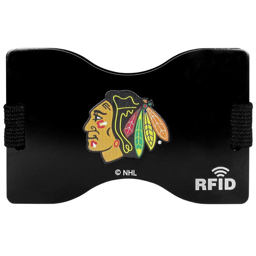 Our RFID blocking wallet and moneyclip is designed to help protect you from falling victim to a particular brand of electronic pickpocketing call RFID skimming. RFID skimming allows a criminal to scan your cards with chips and read your personal information. This attractive Chicago Blackhawks wallet protects against this threat while also meeting all of your slim wallet needs. Store your cards in between the expandable RFID plates and store you cash in the handy outer money clip.