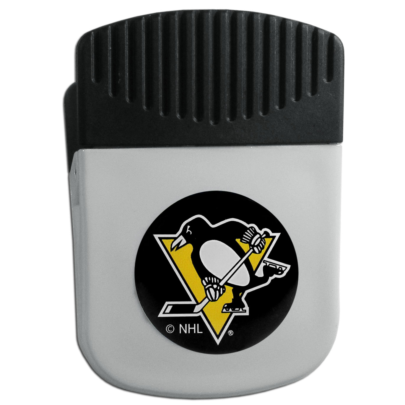 Use this attractive clip magnet to hold memos, photos or appointment cards on the fridge or take it down keep use it to clip bags shut. The magnet features a domed Pittsburgh Penguins logo.