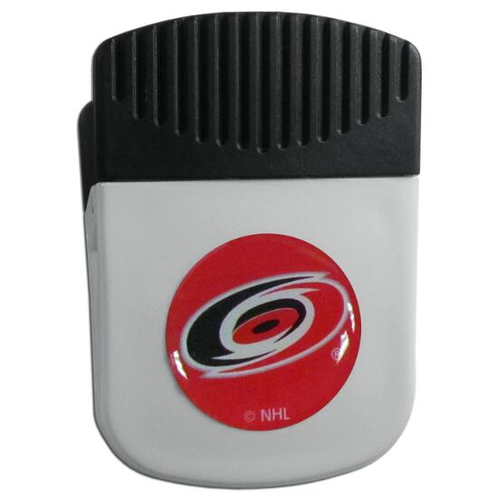 Use this attractive clip magnet to hold memos, photos or appointment cards on the fridge or take it down keep use it to clip bags shut. The magnet features a domed Carolina Hurricanes logo.