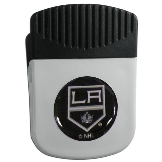 Use this attractive clip magnet to hold memos, photos or appointment cards on the fridge or take it down keep use it to clip bags shut. The magnet features a domed Los Angeles Kings logo.